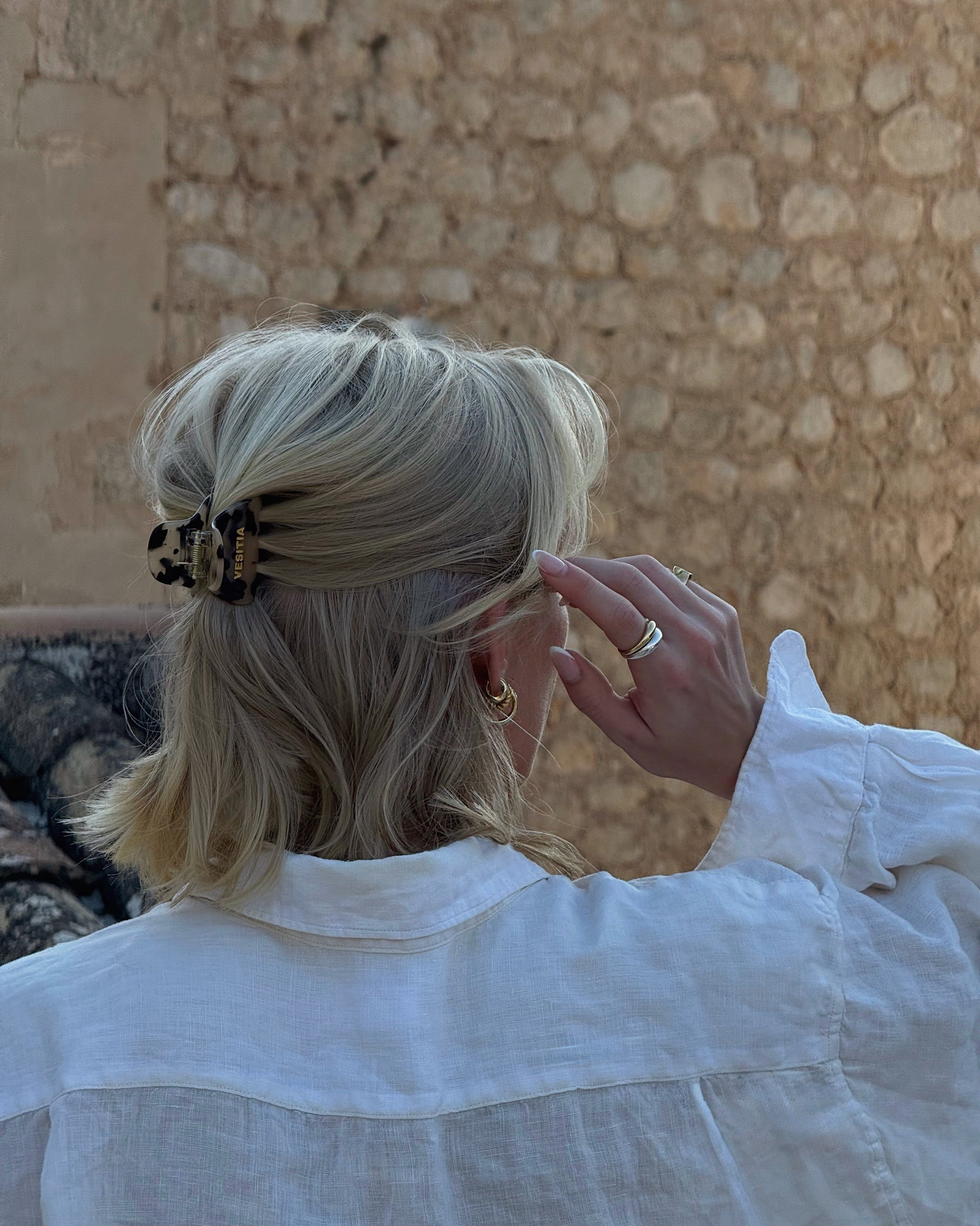 Our Midi Claw Clip is handcrafted from premium Italian bio-acetate and delivered in 100% plastic-free packaging. Designed with an additional internal row of teeth, it holds your hair comfortably all day without slipping despite its compact size.
