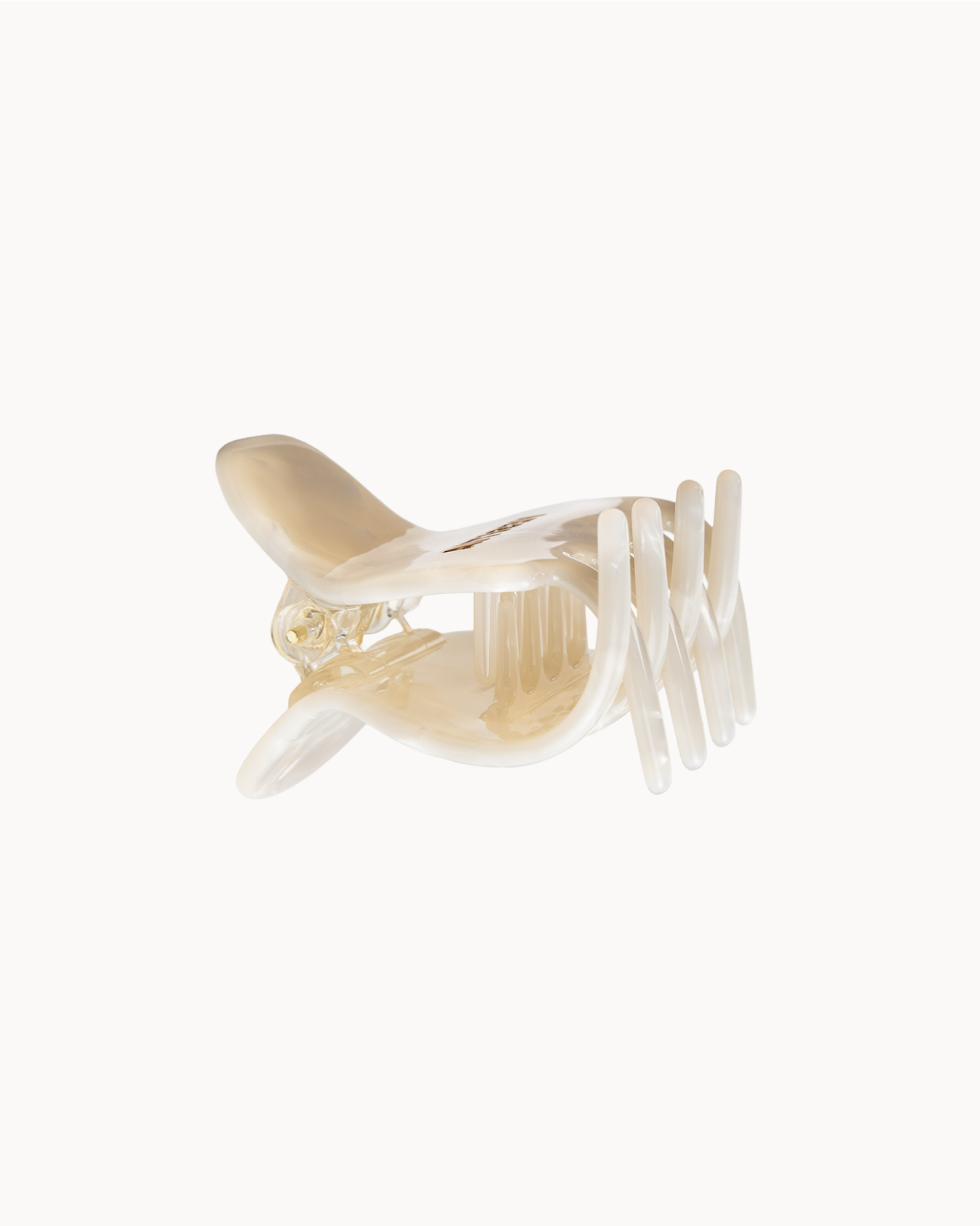Our Midi Claw Clip is handcrafted from premium Italian bio-acetate and delivered in 100% plastic-free packaging. Designed with an additional internal row of teeth, it holds your hair comfortably all day without slipping despite its compact size.