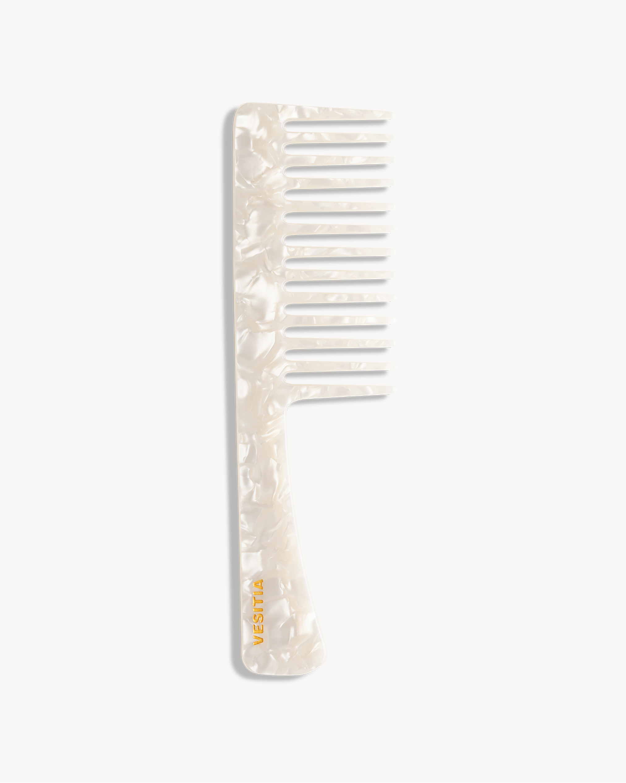 Our Maison Comb blends form and function. Crafted from premium bio-acetate designed in Italy. Expertly made by hand and comes in 100% plastic free packaging. The intentionally spaced wide teeth ensure the ease of comb-through for all hair types. It's effective on both wet and dry hair. With a long handle, the Maison Comb is a staple piece for elevating your daily routine.